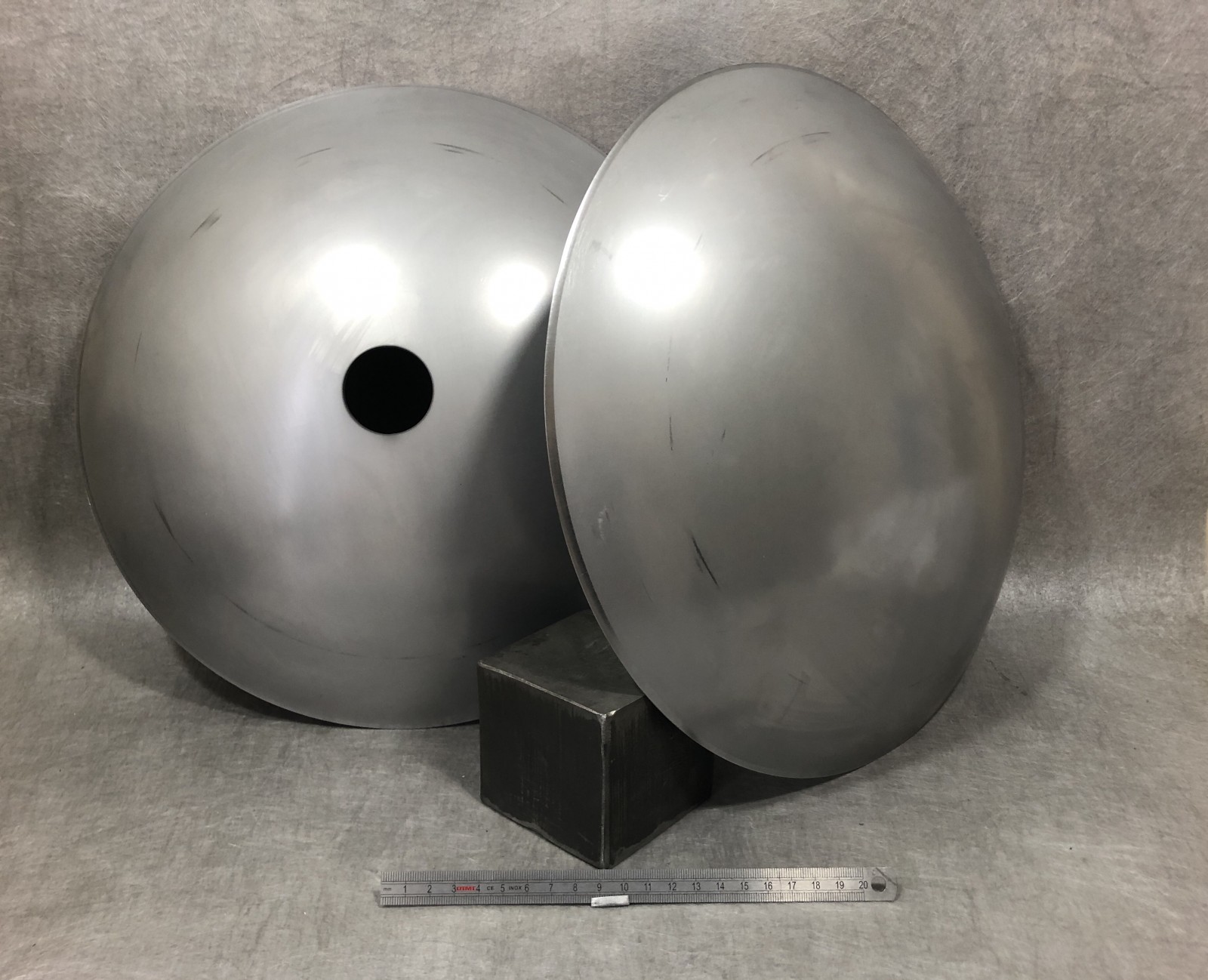 METOLEX réalise des pièces spécifiques et tout type de fonds en petites séries, telles que ces calottes en inox 304L / 1.4307 avec ou sans découpe.